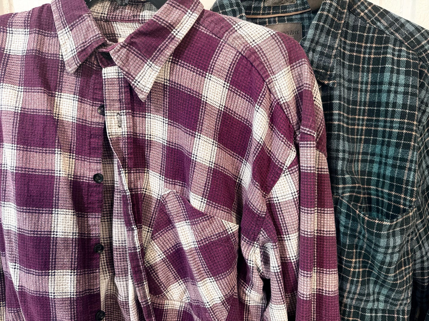 Have you ever wept over clothes? I hadn’t. Not until this moment. In my hands my mom placed two ancient flannels - one red and white, one black and blue, from St. John’s Bay, a JC Penny brand, from decades and decades ago. I shit you not, these were the shirts Papa wore the last time I saw him. I’ve only cried really hard a few times in my life. This was certainly one of them.